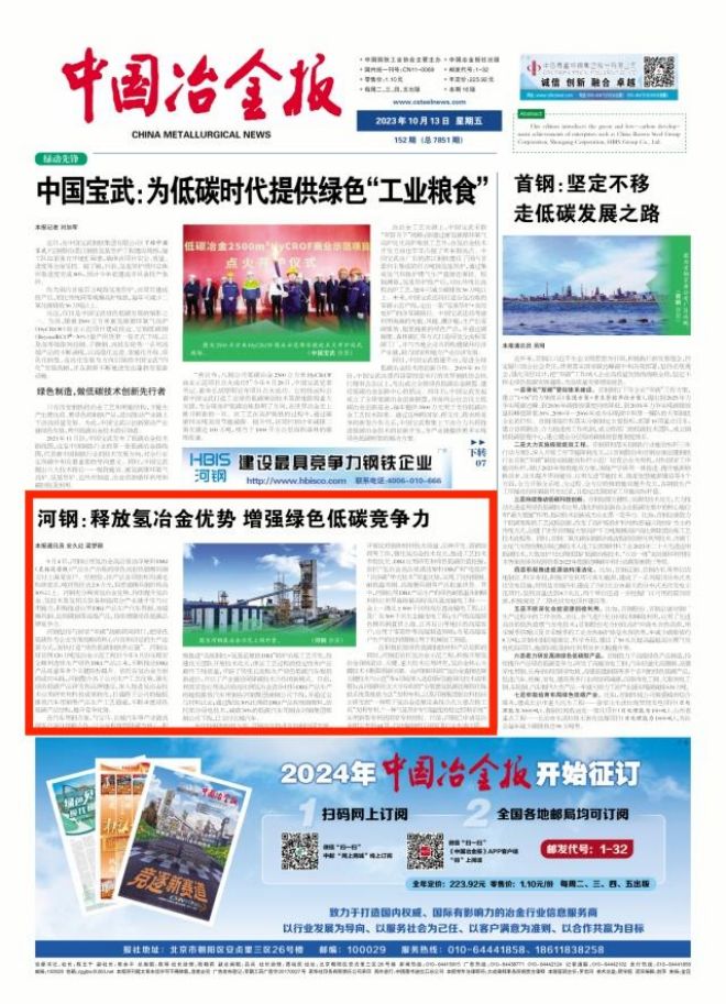 河鋼堅持與國家“雙碳”戰略同向同行,把綠色低碳作為企業發展戰略的核心內容和自覺的生產運營方式,加快打造“綠色低碳鋼鐵供應鏈”。河鋼全球首例120萬噸氫冶金示范工程自今年5月份實現安全順利連續生產綠色DRI產品以來,不斷推動DRI產品質量等多個關鍵指標提升。依托在氫冶金方面的成功實踐,河鋼整合各子公司生產工藝優勢,強化綠色低碳產品研發和品牌建設,深入推進氫冶金技術應用研究和科技成果轉化,打通跨子公司的超低排放汽車用鋼等產品生產工藝通道,不斷豐富綠色低碳產品結構,提升競爭優勢。