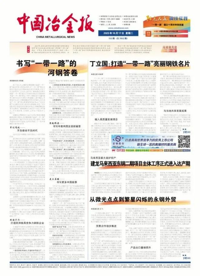 10月份以來,河鋼將河鋼塞鋼打造成“一帶一路”建設樣板工程的故事作為“一帶一路”倡議在歐洲大地的生動實踐接連見諸中央媒體,引發了社會各界的廣泛關注:由中央廣播電視總臺聯合推進“一帶一路”建設工作領導小組辦公室攝制的共建“一帶一路”倡議十周年大型紀錄片《通向繁榮之路》在總臺央視綜合頻道播出,第四集《心手相連》中記錄了河鋼塞鋼及其所在的城市,因為共建“一帶一路”倡議重現繁榮的故事;以“文化絲路”為主題的《美美與共》在央視首播,講述了雙方團隊攜手共建美好家園的故事;以河鋼塞鋼的故事為原型的廣播劇《鋼的交響》在“中國之聲”播出,在央視新聞、央視頻、云聽客戶端同步上線……