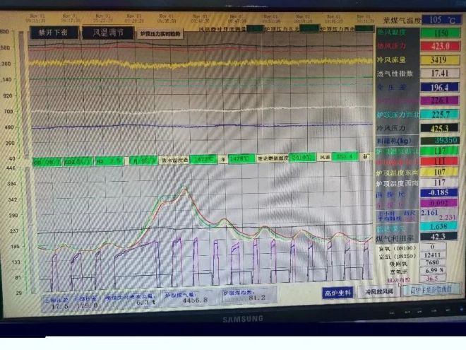圖為2023年10月19日,鞍山寶得鋼鐵有限公司電腦操作截屏顯示均壓風壓波動幾乎為零的冷風壓力曲線值。