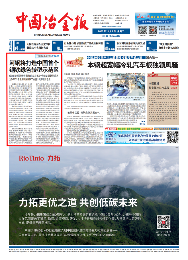 河鋼將打造中國首個鋼鐵綠色轉型示范區(qū)