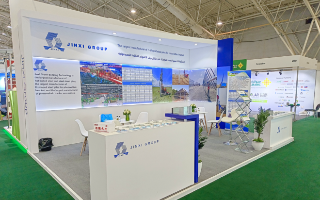 針對中東地區高溫、干燥、多風沙的氣候特點,津西綠建科技積極推進H型鋼在該地區光伏支架系統中的推廣應用。此次展會上,展示了津西開發的多種特殊規格型鋼樁產品,及津西綠建科技集研發設計、加工制作、技術服務于一體的光伏支架全流程供應管理體系,吸引眾多國際客戶到展位參觀洽談。