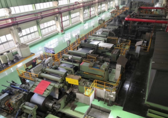 ? 機組配備了自主研發的濕式破鱗拉矯機和矯平機進行機械除鱗及矯正板形,經過破鱗拉矯機及矯平機的高效機械除鱗,能輔助去除帶鋼表面20%~30%的氧化鐵皮,提高了機組的生產速度;