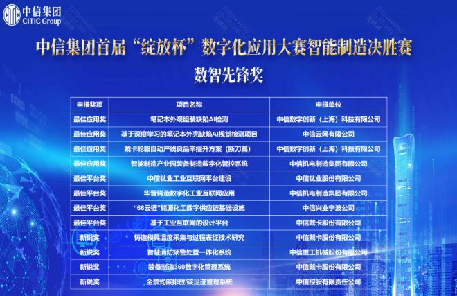 11月17日,以“數(shù)字賦能·智啟未來”為主題的中信集團(tuán)首屆“綻放杯”數(shù)字化應(yīng)用大賽智能制造決勝賽在中信泰富特鋼火熱舉行。