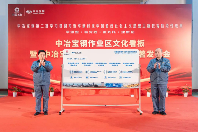 中冶寶鋼黨委以深入開(kāi)展學(xué)習(xí)貫徹習(xí)近平新時(shí)代中國(guó)特色社會(huì)主義思想主題教育為契機(jī),堅(jiān)持以人民為中心的發(fā)展思想,以提高基層管理能力、增強(qiáng)作業(yè)區(qū)核心功能為目標(biāo),探索實(shí)施作業(yè)區(qū)文化建設(shè),形成了具有中冶寶鋼特色的作業(yè)區(qū)文化看板和展現(xiàn)中冶寶鋼人忠誠(chéng)敬業(yè)擔(dān)當(dāng)?shù)摹吨幸睂氫摦a(chǎn)業(yè)工人之歌》專著,取得了深入開(kāi)展主題教育的階段性成果。發(fā)布會(huì)上,公司黨委號(hào)召各級(jí)黨組織和全體員工,認(rèn)真貫徹中國(guó)五礦“五大核心要義”,充分發(fā)揮作業(yè)區(qū)安全生產(chǎn)中心、成本質(zhì)量中心、技能人才中心、思想教育中心的重要作用,加速領(lǐng)跑冶金運(yùn)營(yíng)服務(wù)高質(zhì)量發(fā)展,努力把中冶寶鋼打造成為鋼鐵企業(yè)最廣泛最緊密最深厚的戰(zhàn)略力量。