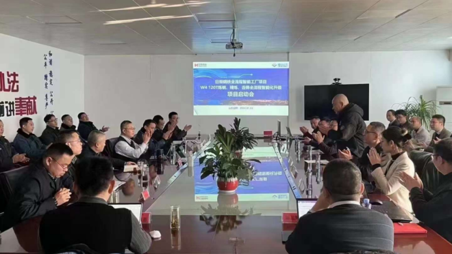 2024年1月3日,日照鋼鐵(以下簡稱日鋼)全流程智能工廠項目W4 120T煉鋼、精煉、連鑄全流程智能化升級項目啟動會在日鋼板材制造部隆重召開。日鋼三位助理副總經理夏侯洪波、陳良、謝基表,以及日鋼信息系統處處長高新永、副處長董淑恩,人力資源處處長李明飛,日鋼W4制造部部長齊林雷,鐳目公司董事長田陸博士、總工王云華,以及鐳目公司日鋼智能化項目經理沈陽等參加了會議。