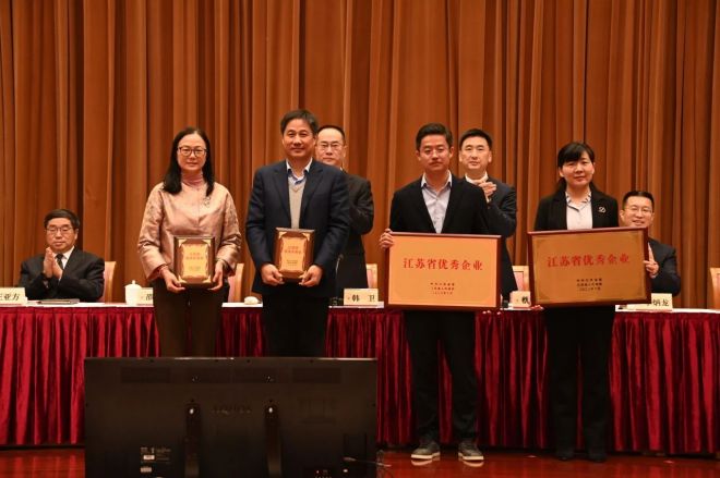 會(huì)議表彰了2023年度獲得國(guó)家級(jí)榮譽(yù)的企業(yè)和江蘇省優(yōu)秀企業(yè),永鋼獲頒“江蘇省優(yōu)秀企業(yè)”和“張家港市新型工業(yè)化領(lǐng)航企業(yè)獎(jiǎng)”榮譽(yù)獎(jiǎng)牌,永鋼集團(tuán)總裁吳毅、永鋼集團(tuán)副總裁程勇分別上臺(tái)領(lǐng)獎(jiǎng)。