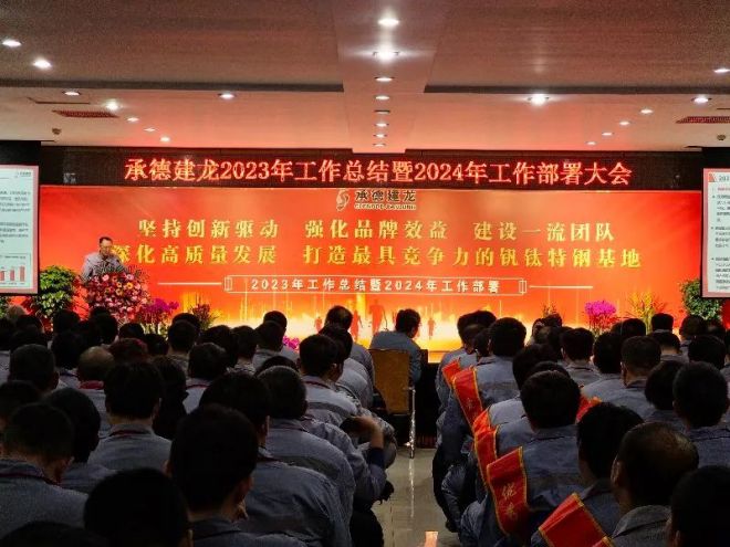 1月20日,承德建龍召開2023年總結表彰暨2024年工作部署大會。會議對2023年度先進團隊及優秀個人進行了表彰,承德建龍總經理王雪原作了題為《堅持創新驅動 強化品牌效益 建設一流團隊 深化高質量發展 打造最具競爭力的釩鈦特鋼基地》的工作報告。