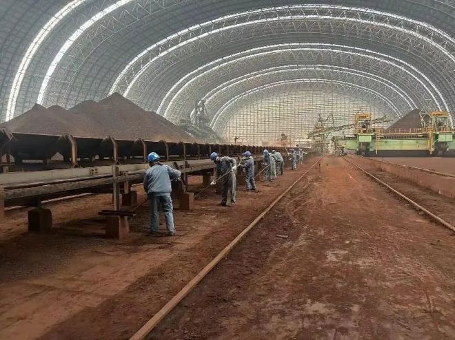 在龍年新春佳節之際,中冶寶鋼蘇皖基地檢修人員堅守崗位,為梅鋼碼頭原料輸送區域的安全穩定運行保駕護航。作為承擔著原料輸入重要任務的梅鋼皮帶機,其正常運行對于整個生產流程至關重要。為確保生產順利進行,原料作業區班組人員在春節期間不停工,迎著江邊的寒風,認真進行皮帶機電機與減速機聯軸器同軸度調整工作,并細致清理已經產生的落料。通過他們的辛勤付出,有效保障了假日期間生產作業環境的整潔,為梅鋼高效生產貢獻力量。