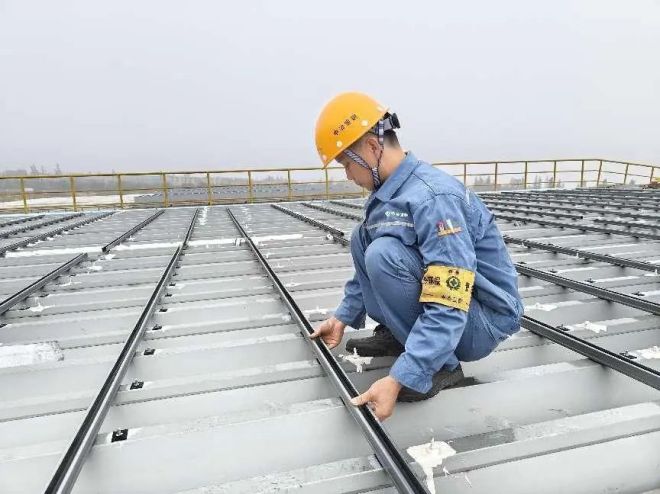 正值春節期間,由中冶寶鋼北部灣基地承接的湛江鋼鐵光伏發電項目二期二步工程卻處于緊張繁忙的施工之中。項目對于鋼廠推進清潔能源應用,實現綠色低碳轉型發展具有重要意義。工程建設區域主要包括湛江鋼鐵廠區內部分廠房屋面、閑置地面等,其中涉及廠房屋面12處、地面2處及氫基豎爐主控樓樓頂,總計面積超過28萬平方米。項目現場,施工人員指揮著吊車將光伏組件吊至屋面,員工們有序地組織光伏組件安裝。為了確保項目如期完工,項目團隊全體員工一個個精神抖擻、各司其職,在屋面寒冷凜冽的大風中緊張有序地施工,以飽滿的精神狀態開啟新年新篇章。
