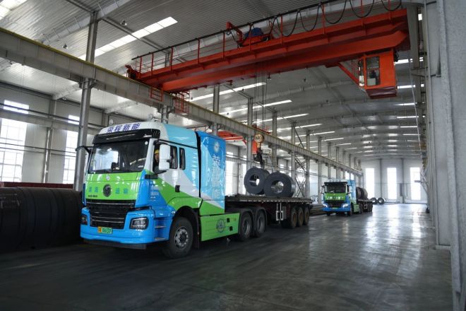 3月1日,天津榮程鋼鐵廠區(qū)到靜海區(qū)客戶廠區(qū)內(nèi)的成品貨物氫能運輸場景再次升級,35輛國六燃油車替換為氫能車運輸,開啟了天津市域內(nèi)成品貨物氫能運輸?shù)男赂窬帧_@是自2021年8月榮程集團投用天津市首個氫能運輸示范應用場景以來,在氫能運輸領域的又一重大突破,榮程集團也成為天津市首批實現(xiàn)清潔運輸比例達80%以上的鋼鐵企業(yè)之一。