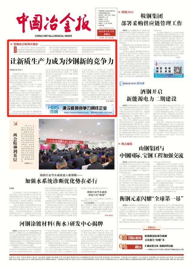 “習(xí)近平總書記突出強調(diào)要因地制宜發(fā)展新質(zhì)生產(chǎn)力,為我們基礎(chǔ)性產(chǎn)業(yè)升級提供了科學(xué)方法與路徑,打了一針‘強心劑’。”沙鋼轉(zhuǎn)爐煉鋼廠相關(guān)負(fù)責(zé)人介紹,以特鋼車間為試點,轉(zhuǎn)爐生產(chǎn)正積極引入前沿技術(shù)、提升產(chǎn)品質(zhì)量、提速智能升級,開發(fā)全生命周期綠色低碳鋼鐵。“以科技創(chuàng)新為引領(lǐng),推進煉鋼技術(shù)升級,我們有條件、有能力走在前、做示范。”他充滿信心地說。“力爭在軋得更好、更快、成本更低上有新突破,重點在拓展中板薄規(guī)格、熱卷高牌號硅鋼等產(chǎn)品的生產(chǎn)上下功夫。”沙鋼鋼板總廠相關(guān)負(fù)責(zé)人說,“我們?nèi)珡S干部職工將牢記習(xí)近平總書記囑托,按照集團公司部署,不斷向優(yōu)、特、高、新領(lǐng)域邁進。”沙鋼冷軋廠相關(guān)負(fù)責(zé)人也表示,他們將努力在新能源用硅鋼等領(lǐng)域創(chuàng)新突破,進一步強化產(chǎn)業(yè)鏈協(xié)同、提升產(chǎn)品檔次、壓降生產(chǎn)成本,以高品質(zhì)、綠色產(chǎn)品不斷滿足客戶更高的需求。