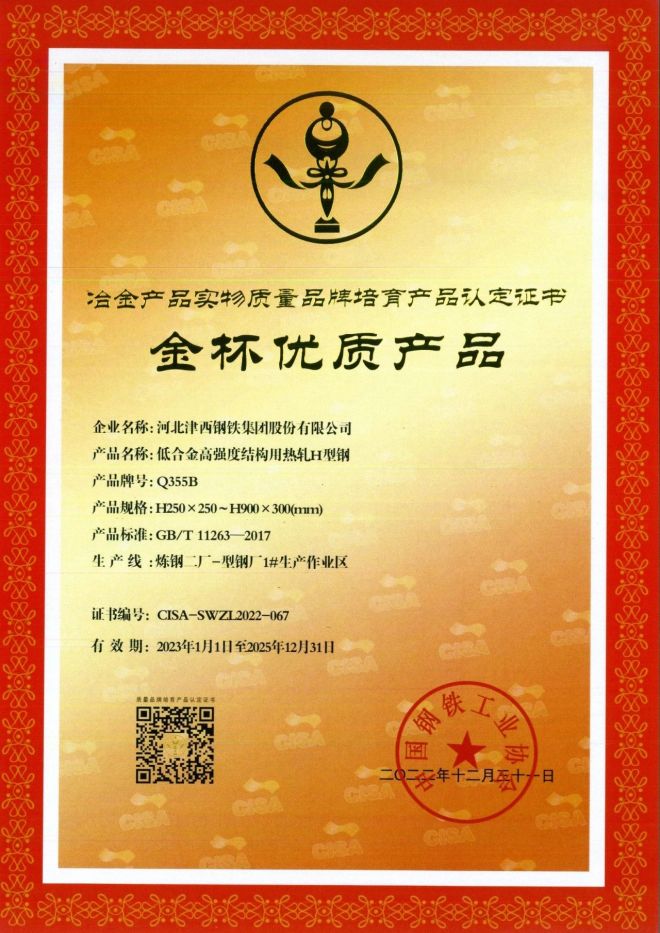 目前,津西型鋼產品已形成H型鋼、鋼板樁、高鐵線桿、工槽角鋼等134個系列、372種規格,擁有耐低溫型鋼、耐候型鋼、高強度型鋼等30余種高端產品,獲得中國船級社工廠認證,尤其抗擊零下30℃歐美標準Z型鋼板樁打破歐美技術壟斷。累計參與起草并實施的標準制/修訂達90余項,獲得日標、韓標、歐標等9個國家的11種產品認證和6個管理體系認證。津西高鐵線桿,涵蓋所有常用規格,廣泛應用于京滬線、京廣線、哈大線、京張線等90余條高鐵工程,國內市場占有率達90%以上。津西H型鋼產品獲得“中國H型鋼市場品質信譽第一品牌”“中國H型鋼市場用戶滿意首選品牌”“中國卓越鋼鐵企業品牌”等稱號,并連續多年被評為“全國用戶滿意產品”。