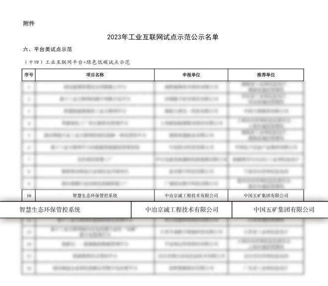 3月21日,工業(yè)和信息化部正式公布了2023年工業(yè)互聯(lián)網(wǎng)試點(diǎn)示范項(xiàng)目名單,中冶京誠(chéng)“智慧生態(tài)環(huán)保管控系統(tǒng)”成功入選工信部2023年工業(yè)互聯(lián)網(wǎng)試點(diǎn)示范項(xiàng)目,該項(xiàng)目為中國(guó)五礦本次推薦申報(bào)的唯一入選項(xiàng)目。