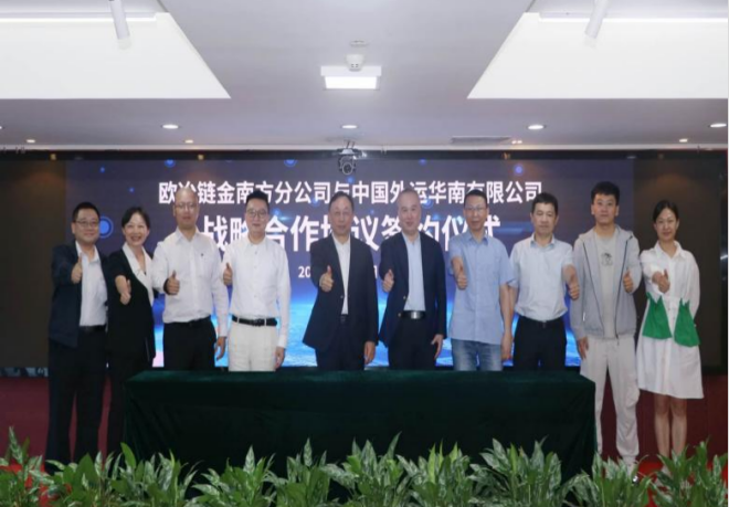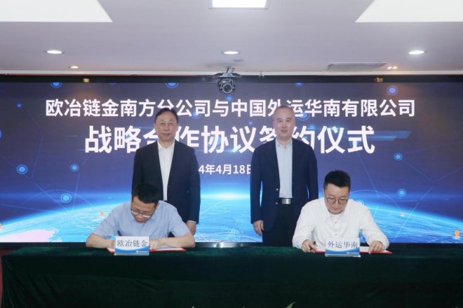 4月18日下午,中國寶武歐冶鏈金南方分公司與中國外運華南公司于廣州簽訂2024年度戰略合作協議,進一步深化業務合作,攜手推動綠色循環經濟的高質量發展。歐冶鏈金黨委委員、高級副總裁陶煒,南方分公司負責人,中國外運華南公司相關負責人等出席并見證簽約儀式。