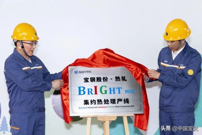 寶鋼股份黨委常委、副總經(jīng)理胡宏,寶鋼股份總經(jīng)理助理、寶山基地總經(jīng)理蔡延擘共同見(jiàn)證了達(dá)產(chǎn)卷的揭幕并為BRIGHT產(chǎn)線揭牌。