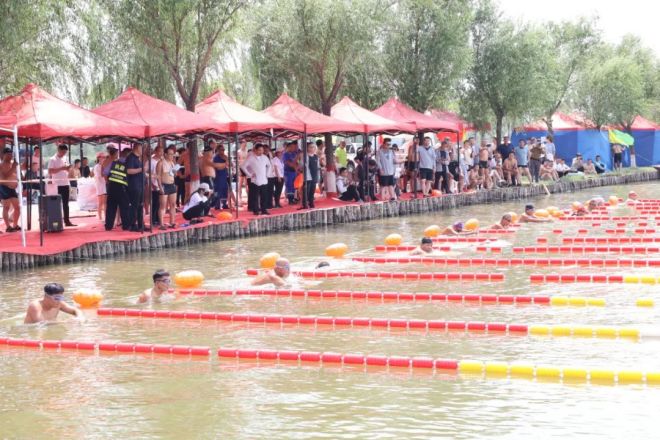 在太子湖重鋼別墅西側水域,100余名游泳愛好者不限泳姿同臺競技,在水上展開了100米、200米、300米“速度與激情”的較量。比賽中,選手們劈波斬浪、“泳”往直前,劃水、收手、伸臂、滑行……動作一氣呵成,湖面不時翻起道道浪花,現場加油聲此起彼伏,氣氛十分熱烈。經過數輪角逐,最終王智強包攬300米、200米和100米三項冠軍。