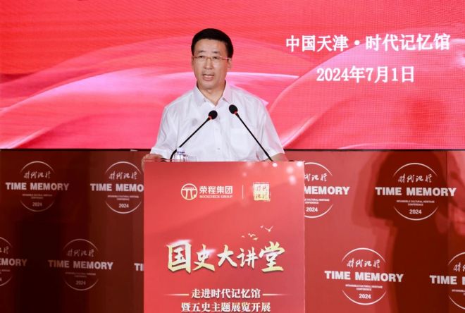 張榮華致歡迎辭。她指出,榮程集團與中華人民共和國國史學會戰略合作,通過改陳升級,合力打造的這座“五史”館,承載了無數先輩留下的輝煌和歷史,更承載著一代人傳承紅色基因、講好紅色故事的堅守。新時代學習“五史”是堅持和發展中國特色社會主義、把黨和國家各項事業繼續推向前進的必修課。對“五史”的學思悟踐,就是為了更好地汲取紅色智慧,深刻認識新時代,把握新時代,奮進新時代,把握歷史大勢,啟迪昭示未來。她希望牢牢把握高質量發展首要任務,為紅色文化注入現代基因,推進中華文化和中國精神凝結升華;她希望充分利用好“五史館”這一重要學習教育載體,通過深入學習貫徹習近平文化思想,牢記習近平總書記賦予我們的使命任務,傳承城市歷史文脈,做好紅色文化資源保護,讓紅色記憶代代傳承,在推動文化傳承發展上善作善成,奮力譜寫中國式現代化天津篇章。她希望以時代記憶五史館建成為契機,面向未來,更加走好新時代的長征路,主動從黨史學習中激發信仰、獲得啟發、汲取力量,不斷增強做中國人的志氣、骨氣、底氣,樹立為祖國為人民永久奮斗、赤誠奉獻的堅定理想,自覺用中華優秀傳統文化、革命文化、社會主義先進文化培根鑄魂、啟智潤心,深刻理解把握時代潮流和國家需要,在傳承創新中不忘初心,賡續紅色血脈,筑牢前進之魂,助力中國式現代化偉大實踐!