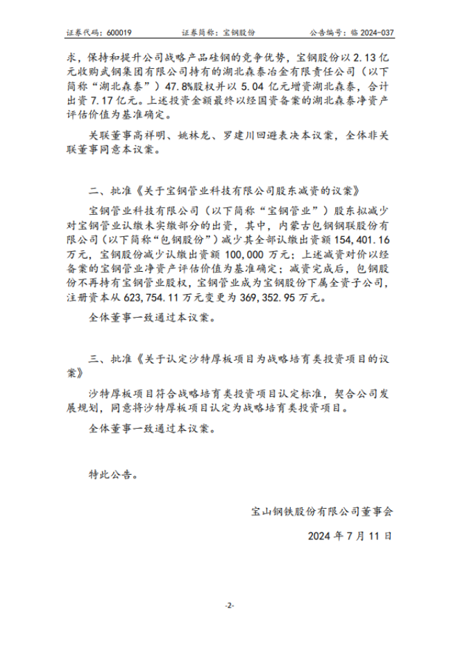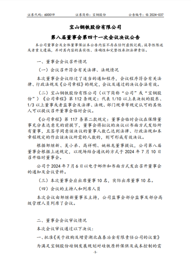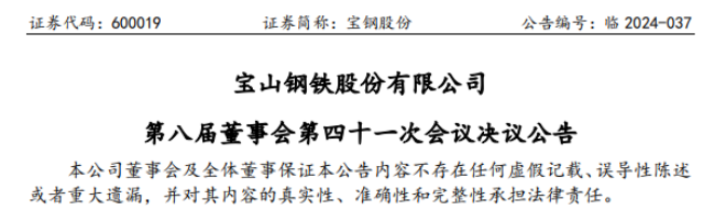 7月12日,寶鋼股份發(fā)布了《寶鋼股份第八屆董事會(huì)第四十一次會(huì)議決議公告》(以下簡(jiǎn)稱《公告》)。