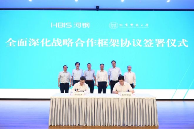 7月16日,河鋼與北京科技大學(以下簡稱北科大)全面深化戰略合作框架協議簽署儀式在河鋼研發中心舉行,雙方深入貫徹落實國家創新驅動發展戰略,在科研開發、成果轉化、平臺建設、人才培養等方面開展務實合作,打造雙贏可持續發展的戰略合作伙伴關系,共同推進鋼鐵行業高端化、智能化、綠色化發展。河鋼集團黨委書記、董事長于勇與北科大黨委書記武貴龍圍繞全面深化校企戰略合作進行了深入交流,并見證簽約。