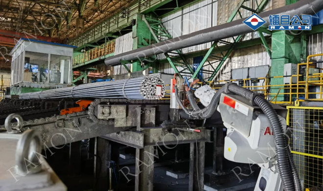 △ 鐳目機械手棒材取樣在鋼廠應用
