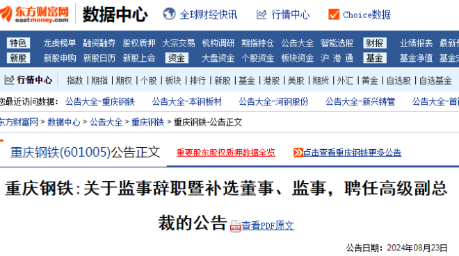 近日,重慶鋼鐵(601005)發布多次公告,進行了多項人事調整。具體內容如下: