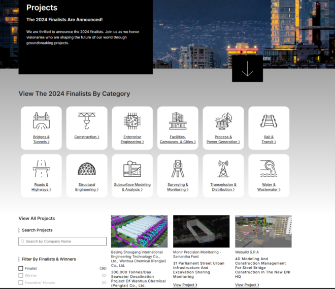 據了解,此次基礎設施數字化光輝大獎賽由全球領先的工程軟件服務商Bentely軟件公司組織舉辦,在基礎設施工程領域獲得廣泛認可。2024年,從36個國家/地區的組織提交的250多個參賽項目中評選得出12個類別的36個決賽入圍項目,其中,中國有11個項目成功入圍決賽。