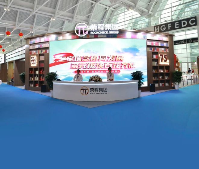 由天津出版集團(tuán)支持,匯聚了習(xí)近平總書記推薦書單及“中國(guó)好書”精選的外圍書墻深具文化底蘊(yùn)。展墻另一側(cè)的《榮程賦》將榮程集團(tuán)步履鏗鏘的腳步如畫卷般徐徐展開,36年的榮耀征程詮釋著榮程人“實(shí)干興偉業(yè)、科技促中和”的堅(jiān)定信念。