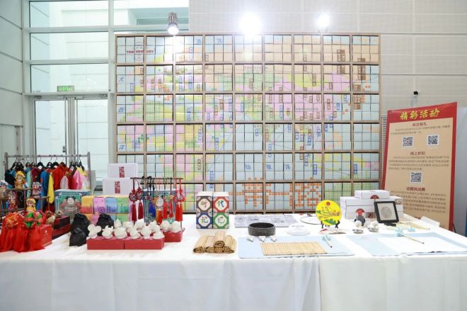 匯聚了中華民族世代相傳珍貴技藝的非遺文化展區(qū),展出了傳統(tǒng)手工藝、民間音樂、舞蹈、戲劇等各種非遺項(xiàng)目,剪紙、刺繡、陶瓷、木雕等非遺作品琳瑯滿目。展廳后方,葛沽寶輦會(huì)上所使用的東茶棚鳳輦和兩架燈亭,融合了媽祖信仰與地方文化精髓,成為一道引人注目的獨(dú)特風(fēng)景。民族文化展區(qū)則展示了不同民族的特色服飾與風(fēng)俗習(xí)慣。