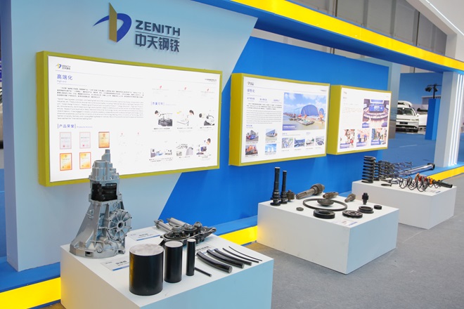 在本次“家門口”的展會上,中天鋼鐵可謂是誠意滿滿。一進(jìn)展區(qū),恢弘大氣的中天展臺便映入眼簾,重點展出了由中天特鋼母材加工制作的汽車輪轂軸承、傳動軸、緊固件、減震彈簧、轉(zhuǎn)向拉桿等關(guān)鍵部件,現(xiàn)場還配有講解員進(jìn)行專業(yè)解說,眾多下游客戶紛紛駐足咨詢,對“中天牌”汽車用鋼有了更為直觀和深入的了解。
