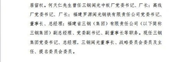 9月30日上午,三鋼集團(tuán)公司召開干部大會,福建省冶金控股公司領(lǐng)導(dǎo)宣讀任命決定:何天仁同志任三鋼集團(tuán)黨委書記、推薦為董事長、法定代表人人選。