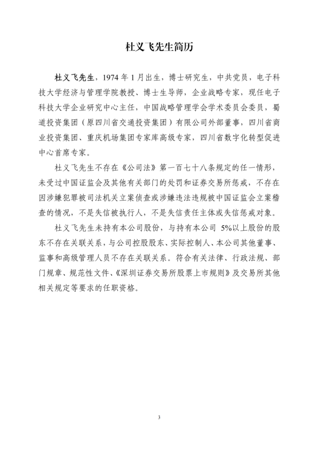 杜義飛先生,1974 年 1 月出生,博士研究生,中共黨員,電子科技大學經濟與管理學院教授、博士生導師,企業戰略專家,現任電子科技大學企業研究中心主任,中國戰略管理學會學術委員會委員,蜀道投資集團(原四川省交通投資集團)有限公司外部董事,四川省商業投資集團、重慶機場集團專家庫高級專家,四川省數字化轉型促進中心首席專家。