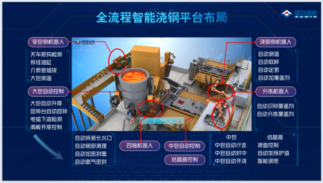 鐳目的這套全流程智能一鍵澆鋼系統(tǒng)真正實(shí)現(xiàn)了從鋼水上連鑄回轉(zhuǎn)臺(tái)到鋼坯生成的全流程一鍵貫通,整個(gè)澆鑄過(guò)程僅需操作人員在操作室遠(yuǎn)程監(jiān)護(hù)即可,讓工人真正遠(yuǎn)離高溫、惡劣的現(xiàn)場(chǎng)環(huán)境,徹底打破了人們對(duì)傳統(tǒng)連鑄澆鋼方式的認(rèn)知。此外,中南鋼鐵通過(guò)應(yīng)用此大包智能澆鋼平臺(tái),大大提升了連鑄裝備智能化水平和工作效率,減少了鑄坯的切廢比和探傷不合格率,同時(shí)提高了產(chǎn)品質(zhì)量,降低能源消耗,獲得了顯著的經(jīng)濟(jì)效益和社會(huì)效益,市場(chǎng)前景廣闊。