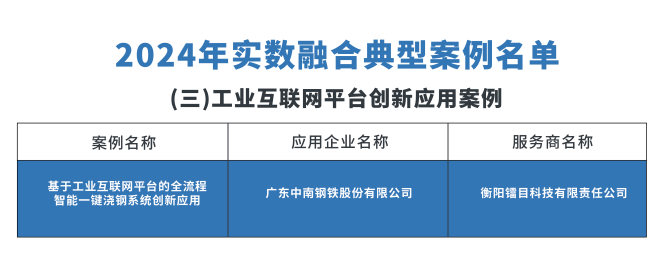 近日,工業(yè)和信息化部發(fā)布了關(guān)于2024年實(shí)數(shù)融合典型案例名單的公示。 鐳目科技潛心研發(fā)并應(yīng)用于廣東中南鋼鐵股份有限公司(原韶關(guān)鋼鐵公司,下文簡(jiǎn)稱中南鋼鐵)的“全流程智能一鍵澆鋼系統(tǒng)”成功入選“智能化制造”方向典型案例。