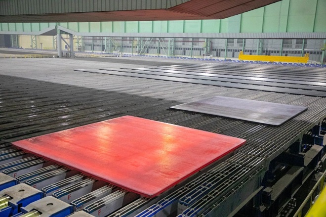 1月24日,河南鋼鐵集團(tuán)周口基地二期寬厚板生產(chǎn)現(xiàn)場機(jī)器轟鳴、熱浪灼人,火紅的鋼坯經(jīng)過“世界最寬5600mm軋機(jī)”的多道軋制,寬度達(dá)5350mm的板材成功下線。經(jīng)檢驗(yàn),各項(xiàng)指標(biāo)均符合要求,標(biāo)志著周口基地5600mm軋機(jī)的軋制寬度達(dá)到了設(shè)計(jì)能力。