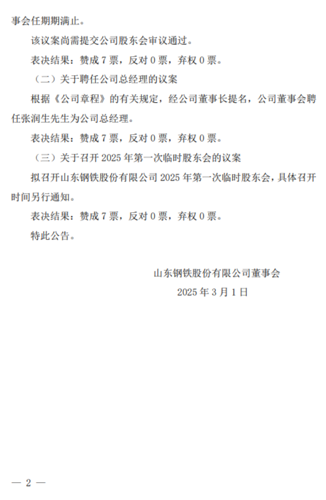 3月1日,山東鋼鐵發(fā)布了《山東鋼鐵股份有限公司第八屆董事會第九次會議決議公告》(以下簡稱《公告》)。