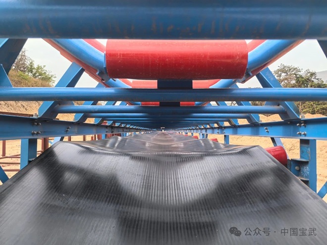 西芒杜礦山礦石下山運輸膠帶系統是項目的核心樞紐工程。礦山公司本次率先啟動膠帶安裝的CV2段全長1980米,穿梭于陡峭的山林之間,土建與安裝難度極高。自2024年3月17日開始土建基礎施工,經過358天的不懈努力,2025年3月10日第一片250米長的膠帶鋪到了托輥上,標志著這一關鍵工程進入到了最后的沖刺階段。