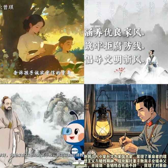 中冶武勘將家風故事作為優良家風傳承的生動載體,各基層黨組織通過多種方式讓家風故事在黨員中廣泛傳播,以榜樣力量引領風尚。中冶武勘智誠公司黨總支運用先進的AI技術工具,自動生成并演繹了一系列原創家風主題故事,從“‘中國’名稱的由來”到“與妻書”,再到“武小蟻探尋家風之旅”,這些故事以生動的情節、鮮活的人物形象,展現了家風傳承的深厚底蘊和時代價值,讓黨員們在科技與文化的交融中感受家風的力量。辦公室企管后勤黨支部、上海工程公司黨總支向全體黨員征集家風小故事,通過現場分享,讓大家不僅加深了對優良家風的理解,還深入思考黨的理論知識與自身的責任使命,進一步強化了理論素養和政治覺悟。