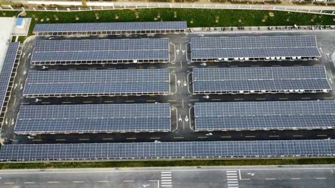 面對《國民經濟和社會發展第十四個五年規劃和2035年遠景目標綱要》提出的碳達峰目標,作為陜西省的重點生產企業,虹陽顯示將綠色低碳發展作為企業轉型的核心戰略,積極響應政策號召利用廠區閑置屋頂和停車位區域,由思安新能源股份有限公司投資,隆基森特負責EPC建設分布式光伏電站,以實際行動踐行綠色低碳生產理念。