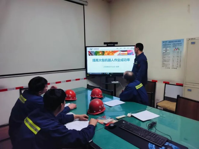 為了保證不同的操作者的無差別操作,團隊成員不斷摸索,尋求最有效的操作手法,并將其固化。在試驗班組開展操作跟蹤指導,經過一段時間的強化訓練,大包機器人作業成功率明顯提高。團隊將總結的操作經驗推廣至全作業區,實現大包機器人標準化操作,形成了人機的完美融合,機器人運行穩定性持續提升。