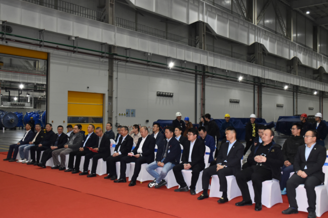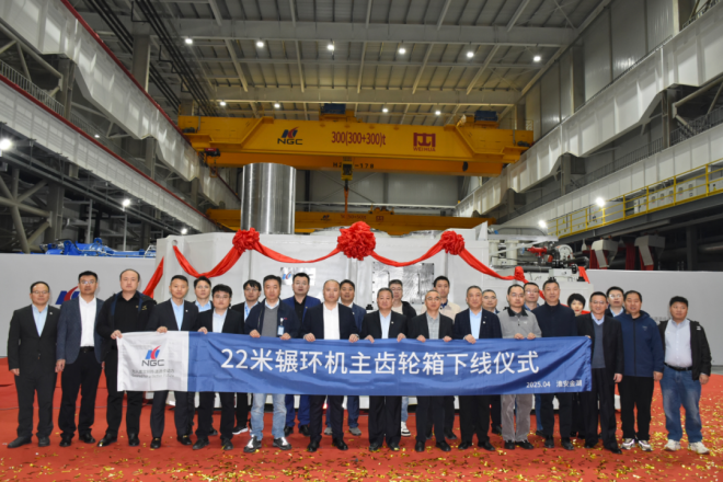 暮春的淮安碧波瀲滟,機械交響與春意同頻共振。4月1日,南京高精齒輪集團有限公司(以下簡稱“南高齒”)22米輾環機主齒輪箱下線儀式在淮安金湖成功舉行。公司總經理、工業事業部總裁丁元興與產業鏈合作伙伴代表共同見證這一重要時刻,標志著我國在超大型環件精密軋制裝備領域取得重大突破。