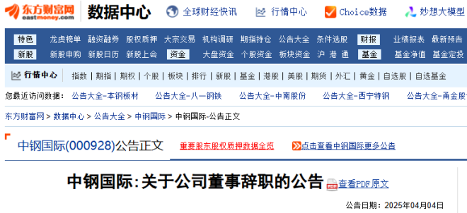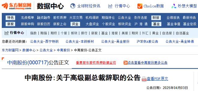 4月2日,廣東中南鋼鐵股份有限公司發布了《關于高級副總裁辭職的公告》。