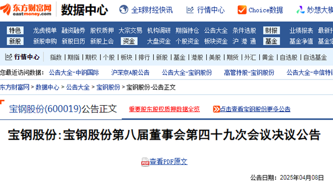4月8日,寶鋼股份發(fā)布了第八屆董事會(huì)第四十九次會(huì)議決議公告。