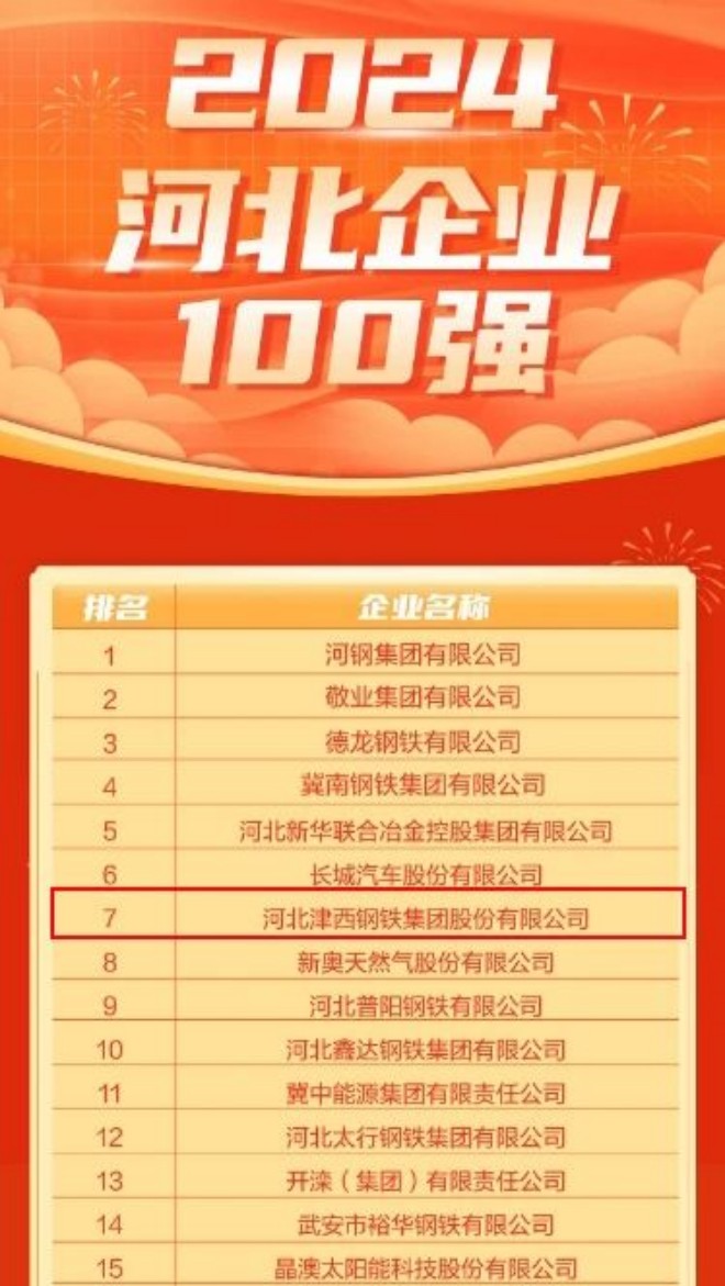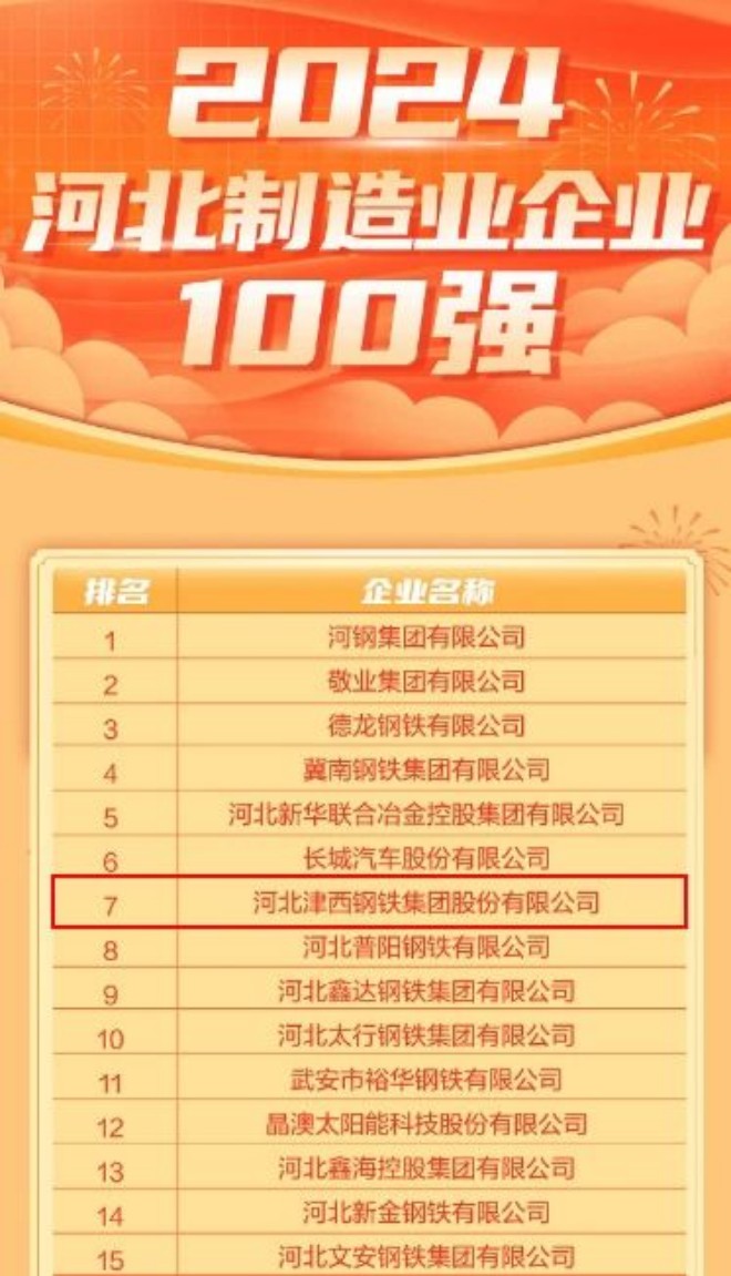 居2024河北制造業(yè)企業(yè)100強(qiáng)第7位