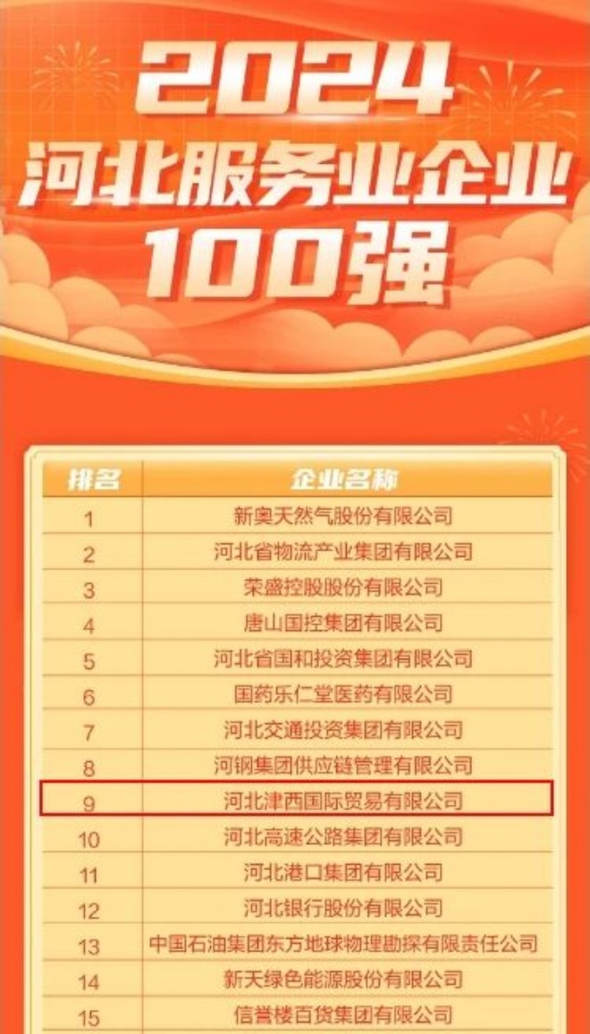 居2024河北服務(wù)業(yè)企業(yè)100強(qiáng)第9位