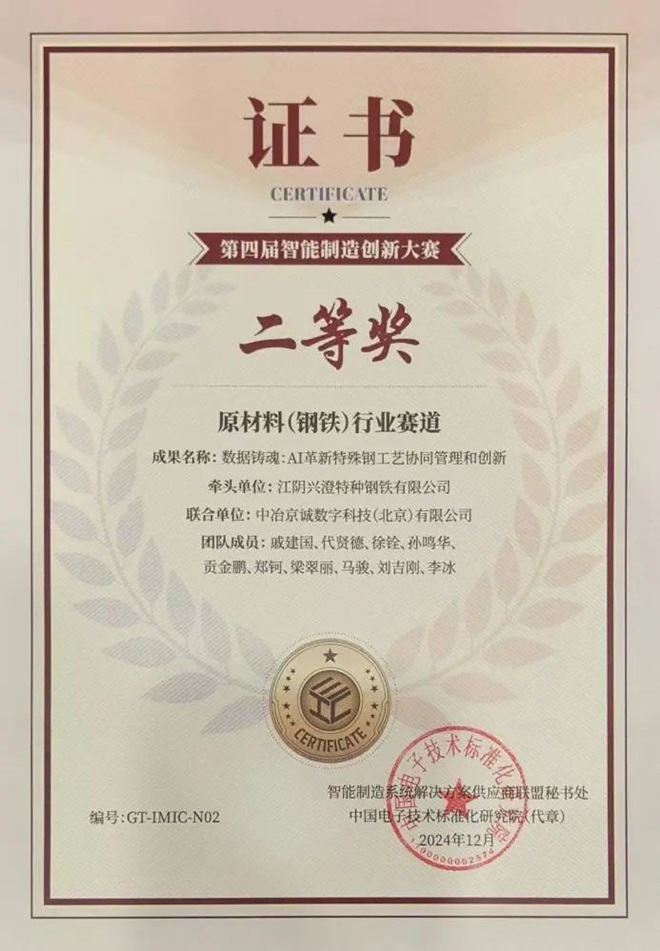 中冶京誠(chéng)數(shù)科公司與江陰興澄特鋼聯(lián)合申報(bào)的《數(shù)據(jù)鑄魂:AI革新特殊鋼工藝協(xié)同管理和創(chuàng)新》解決方案榮獲第四屆智能制造創(chuàng)新大賽—原材料(鋼鐵)行業(yè)賽道決賽二等獎(jiǎng)。該方案運(yùn)用云計(jì)算、物聯(lián)網(wǎng)、大數(shù)據(jù)、AI等先進(jìn)技術(shù),構(gòu)建數(shù)據(jù)治理與安全體系,打造特鋼行業(yè)數(shù)智管控中心,實(shí)現(xiàn)了生產(chǎn)過(guò)程的實(shí)時(shí)監(jiān)控與智能調(diào)度,有效提升了生產(chǎn)效率和產(chǎn)品質(zhì)量,構(gòu)建鋼鐵行業(yè)垂直大模型,覆蓋核心生產(chǎn)工序,打造“鐵、鋼、軋、能、環(huán)、研”六位一體智能制造體系。本次獲獎(jiǎng),是江陰興澄特鋼獲得全球特鋼行業(yè)首個(gè)“燈塔工廠”后雙方攜手合作的又一科研碩果,是對(duì)雙方智能制造創(chuàng)新實(shí)踐的權(quán)威認(rèn)可,未來(lái)雙方將進(jìn)一步凝聚合力,為特殊鋼行業(yè)智能化轉(zhuǎn)型發(fā)展持續(xù)賦能,攜手譜寫(xiě)行業(yè)高質(zhì)量發(fā)展新篇章。