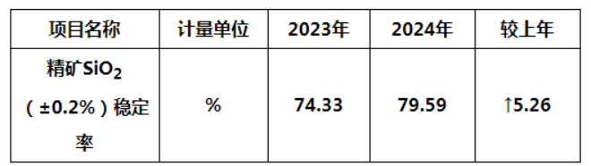 效率:2023年、2024年選礦從業人員勞動生產率(44580噸/人、45351噸/人)、球團從業人員勞動生產率(13854噸/人、15760噸/人)在中礦協重點統計單位中排名第一。