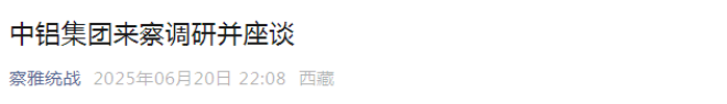 6月20日,察雅統戰公眾號發布了《中鋁集團來察調研并座談》一文。