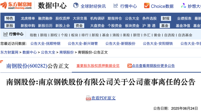 6月23日,南鋼股份發(fā)布《南京鋼鐵股份有限公司關(guān)于公司董事離任的公告》。