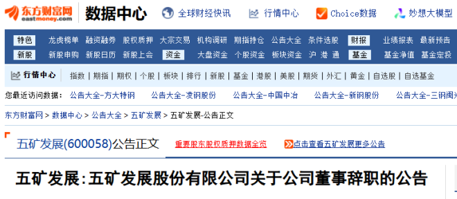 6月28日,五礦發展發布了《五礦發展股份有限公司關于公司董事辭職的公告》。