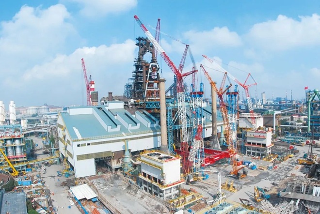 2004年,由上海寶冶承建的寶鋼股份4號高爐(4350立方米)新建工程是大型高爐模塊化建造的首次實踐。面對當(dāng)時世界先進(jìn)特大型高爐的復(fù)雜結(jié)構(gòu)與高要求,傳統(tǒng)施工模式難以滿足工期與質(zhì)量標(biāo)準(zhǔn),上海寶冶項目團(tuán)隊創(chuàng)新性提出爐殼分段模塊化安裝方案:先對爐殼進(jìn)行精細(xì)結(jié)構(gòu)分析,結(jié)合工廠加工可行性、運(yùn)輸便利性及現(xiàn)場安裝精度要求,通過計算機(jī)模擬論證,將其劃分為4個大型模塊;工廠預(yù)制階段,引入數(shù)控切割、自動埋弧焊等先進(jìn)技術(shù),嚴(yán)控加工精度與焊接質(zhì)量,每個模塊均經(jīng)嚴(yán)格尺寸檢測與無損探傷。模塊運(yùn)至現(xiàn)場組裝后,吊裝難題凸顯。為此,上海寶冶團(tuán)隊采用2臺大型履帶式起重機(jī)協(xié)同作業(yè),配合精準(zhǔn)指揮與實時監(jiān)測,將模塊平穩(wěn)吊裝到位,安裝對接精度控制在毫米級。同時,他們的管道安裝采用工廠預(yù)制管段、電氣施工提前預(yù)演等創(chuàng)新,進(jìn)一步提升效率。歷經(jīng)26個月緊張施工,該項目順利投產(chǎn),刷新當(dāng)時世界特大型高爐建設(shè)速度紀(jì)錄,既為寶鋼帶來顯著經(jīng)濟(jì)效益,更奠定了上海寶冶模塊化建造的技術(shù)基礎(chǔ)。